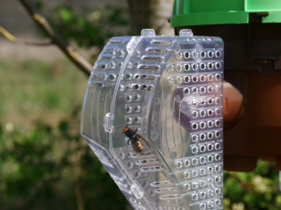 Les insectes plus gros que 9 mm (comme le frelon européen et l'abeille charpentière) ne peuvent pas entrer dans le piège car le cône d’entrée a précisément ce diamètre.