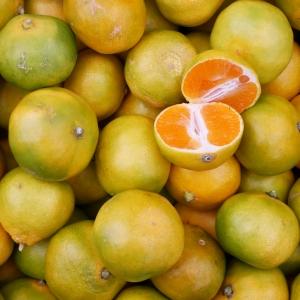Premières mandarines de la saison, à peau verte-jaune et à chair orange, parfum acidulé.