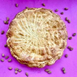 Galette à la frangipane, composée de la crème pâtissière à la vanille (véritable gousse de vanille de Madagascar), et de la crème d’amandes.