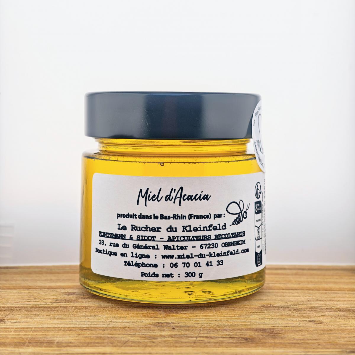 Notre Miel d'Acacia est produit sur les flancs du Kronthal entre Marlenheim et Wasselonne. Sa texture est liquide, son odeur est fleurie avec une intensité et une persistance moyenne. Sa saveur est fleurie avec des notes légèrement vanillées. Note miel d’acacia est suave avec un goût sucré élevé.
