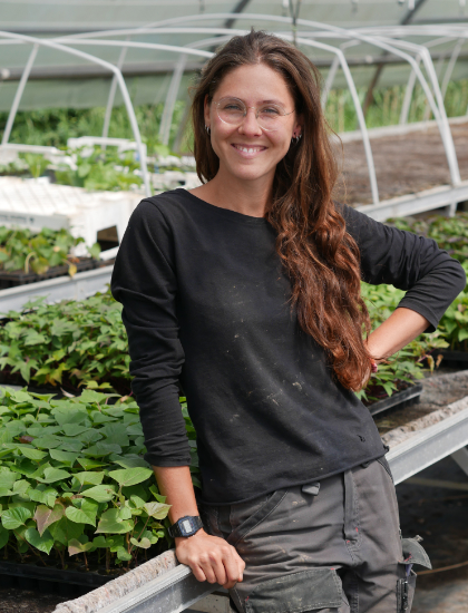 Il est essentiel pour moi de contribuer du mieux possible à faire vivre ce lieu au service de toustes. S'engager pour une alimentation durable, faire perdurer ces écosystèmes et promouvoir ce modèle de travail en collectif. Ma place en tant que femme dans ce milieu agricole est aussi un combat que je souhaite rendre visible. Une place dans les champs, en pépinière ou sur le tracteur, largement méritée.